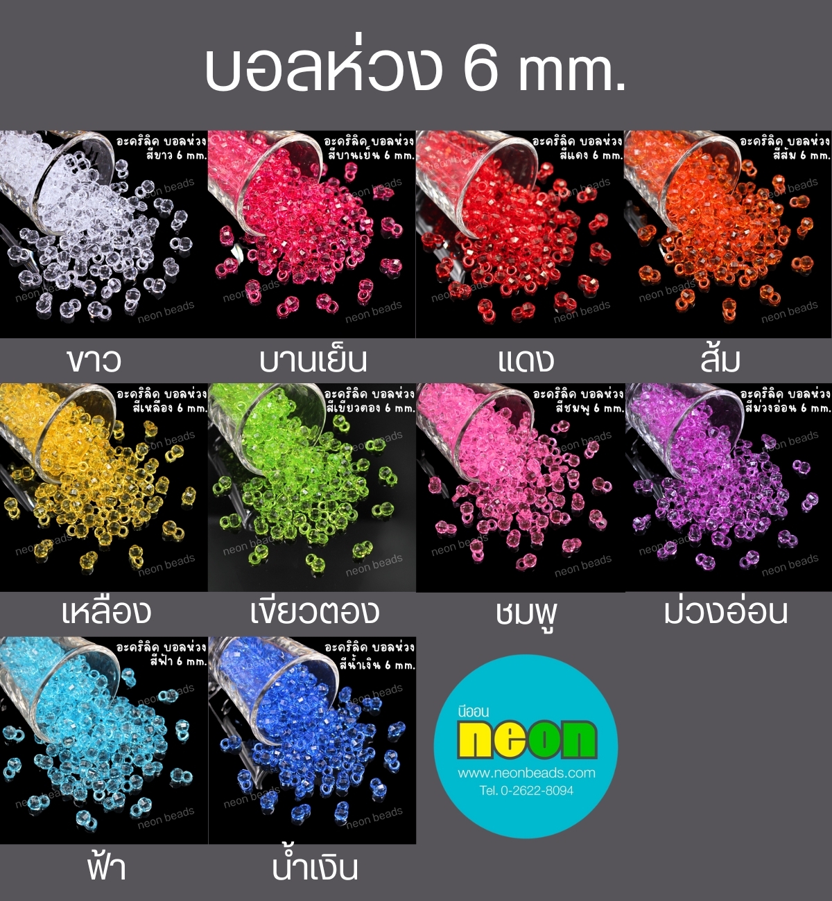 สินค้า ใน อะคริลิกบอลห่วงขนาด6mm./500กรัม (10 ชนิด)